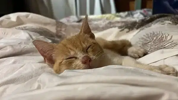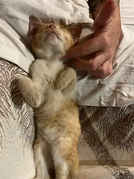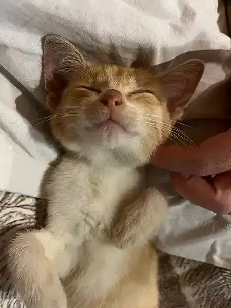 Description : Trouvé tout seul au milieu de nulle part, ce petit bout de chat a usé de tout son charme pour se faire recueillir . Et il a eu raison, car il est tellement câlin, sociable, tout doux, qu’il a déjà trouvé sa famille pour la vie