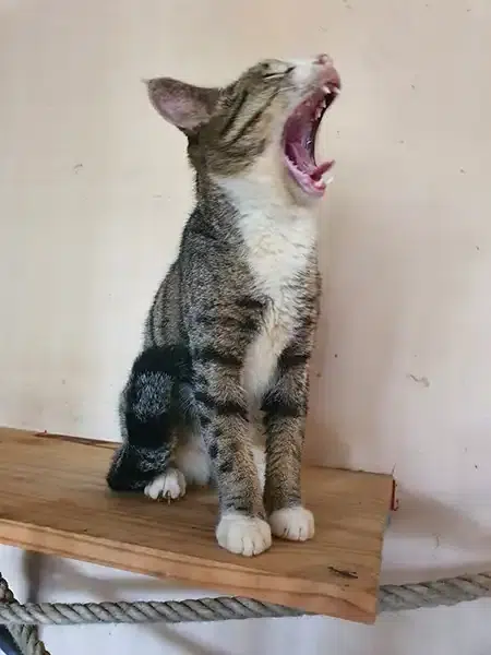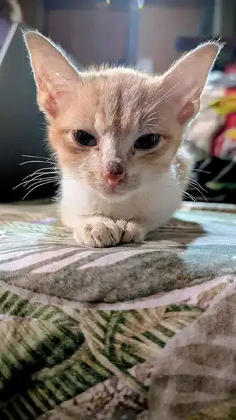 Description : Le petit chaton bien dans ses coussinets par excellence !! Sosie n’a peur de rien, intrépide, curieux, hyper câlin +++ Très sociable. Quand il y a quelque chose ou quelqu’un de nouveau, il faut qu’il aille voir. Un brin concierge ? oui, peut être, mais il est tellement mignon qu’on lui pardonne tout. Il a vite oublié son début de vie difficile dans la rue et est prêt à partager aventures et câlins auprès de vous.