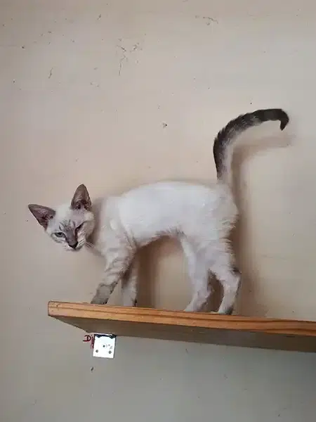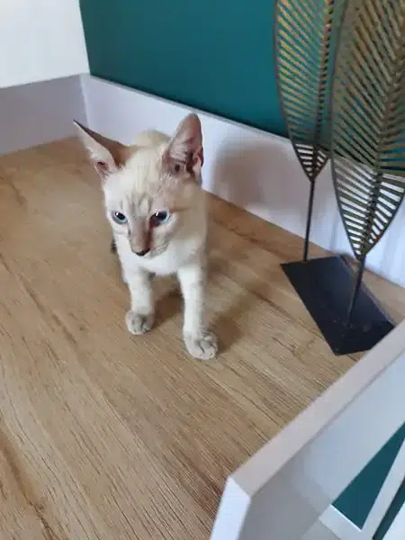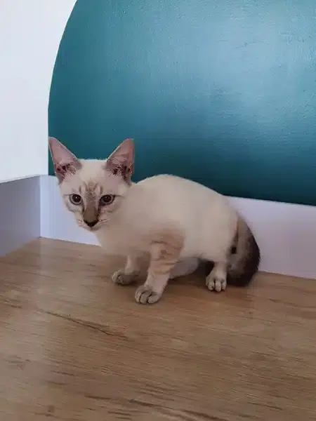 Description : Croisé siamois, trouvé avec Kit et déposé à l’asso de bon matin! Un chaton tout doux, un peu gourmand . Timide quand il ne connaît pas mais avide de caresses. Un petit bonheur à lui tout seul