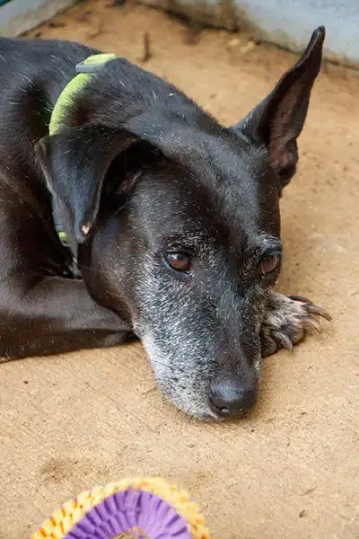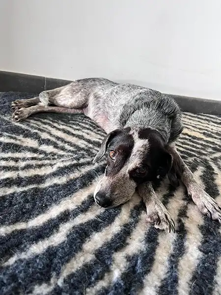 Santé :identifiée, vaccinée, vermifugée. Ligaments croisés bilatéral, probablement congénital. Sous anti inflammatoires actuellement, à vérifier si besoin d’opérer ou autres options thérapeutiques.