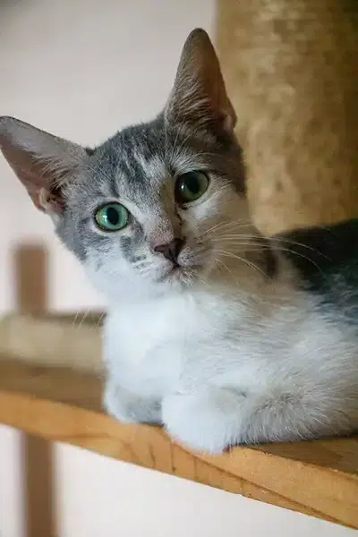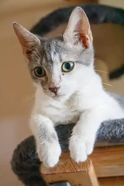 Description : Symbole de sagesse, bon, pas tout le temps, mais c’est encore un bébé !! La miss est joueuse, taquine, hyper sociable et très câline. Une louloute très à l’aise dans ses escarpins, oups, pardon, coussinets !! Ok avec tout, chats, chiens, humains, enfants…. Une jolie boule de poils et de joie de vivre prête à partager jeux et ronrons avec vous