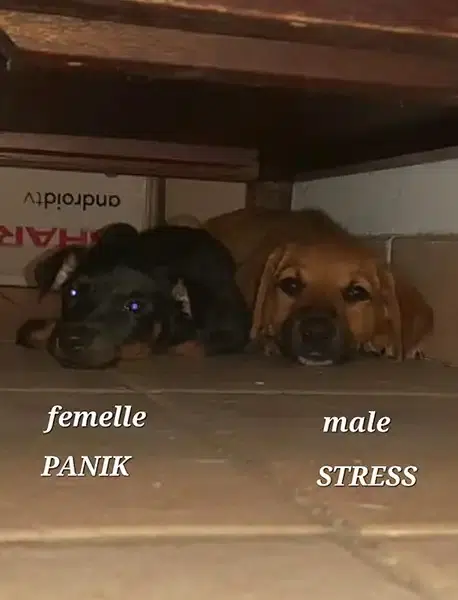 Description : Pas d’inquiétude, ces 2 loulous avaient très peur quand on les a récupéré, mais ils ont vite pris leurs marques et se délectent de la vie en famille, des paniers confortables, des gamelles bien remplies et des jeux avec les copains. Panik se révèle plus téméraire que son frère, elle vient chercher les caresses, se fait entendre et comprendre. Stress est un peu plus timide, il imite sa sœur, mais avec une approche plus douce. La fonceuse et le charmeur !!