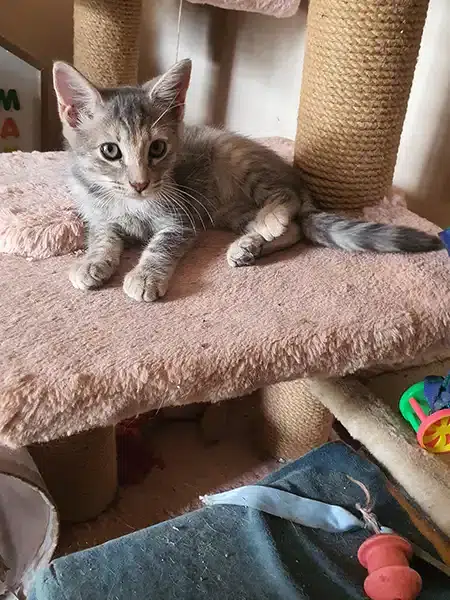 Description : Vous savez, les chatons donnés contre “bons soins” ?? Et bien voila, les soins n’étaient pas si bons que ça et le caprice des gens passé, cette petite puce a bien failli se retrouver à la rue. Pourtant, elle est jolie, en bonne santé, câline, joueuse et sociable. Elle mérite d’avoir une gentille famille sérieuse et engagée